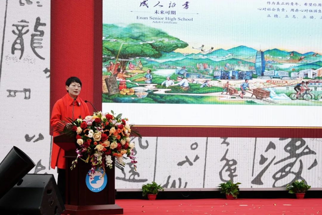 成人仪式,是庆祝,是宣告,是希冀。从今天起,同学们将和少年的自己告别,正式以青年的身份和世界开始握手;从今天起,同学们的视野与胸怀将不再是“小我”,而应兼具“他人”、“家国”和“人类”;从今天起,同学们的精神与意志将不局限于学业,而应怀揣青春、奋斗和梦想。