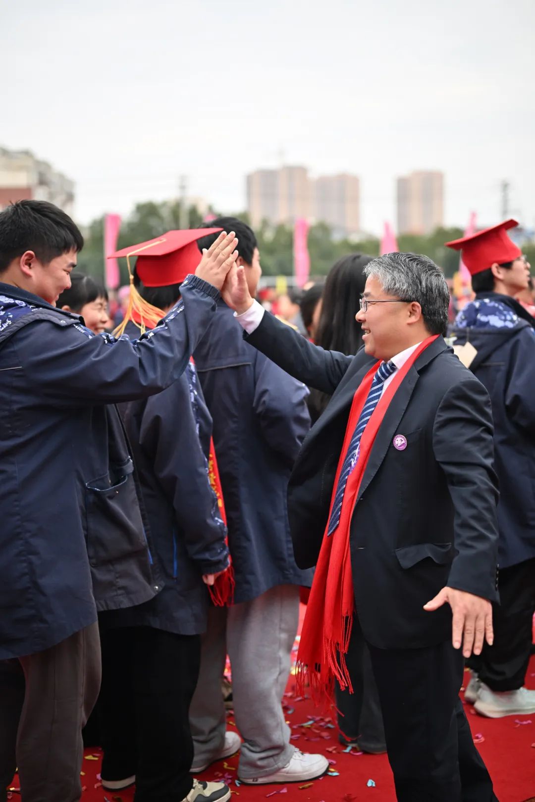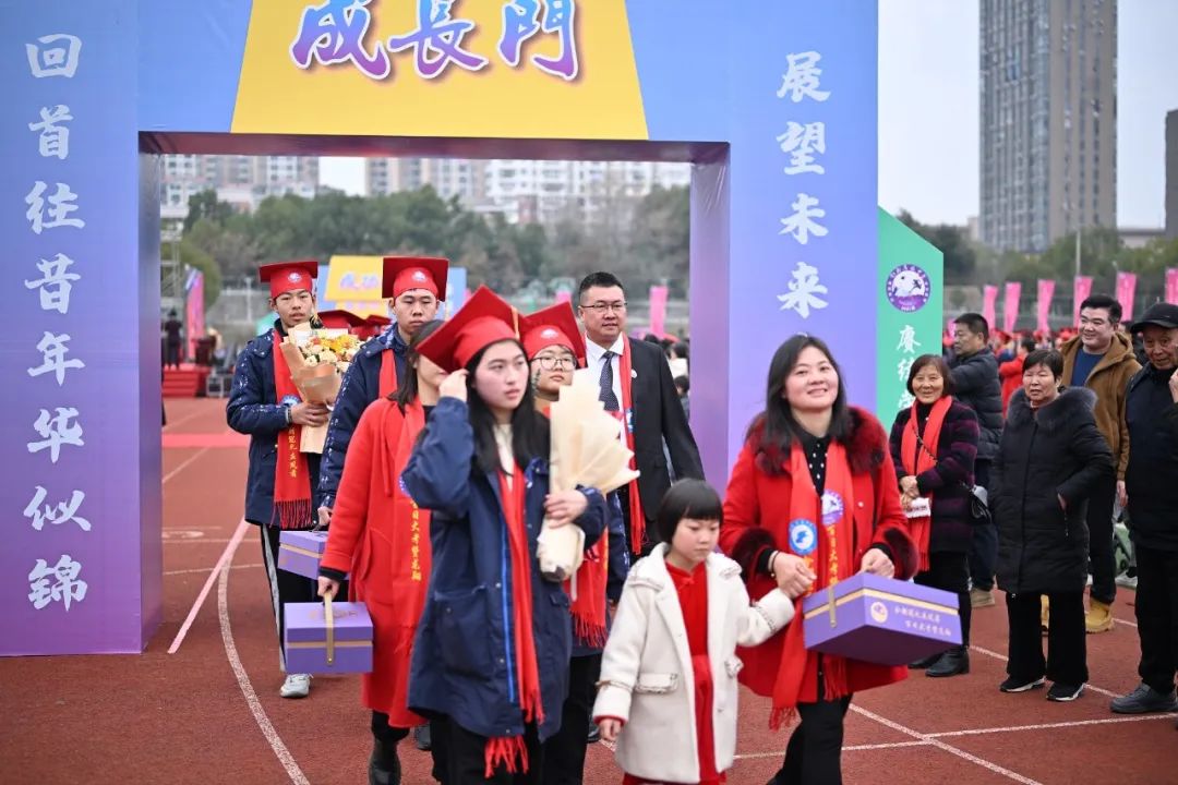 今朝冠礼庆凤翥,百日大考赞龙翔。高三学子在家长的目光中,感受生命的深沉;在老师的寄语里,汲取智慧的光茫;在同龄人的陪伴下,共铸青春的誓言。此次成人礼暨百日誓师大会,不仅是学生成长路上的一座丰碑,更是冲刺征途中的一剂强心针。它将成为师生共同备考的精神支柱,激发出无限的潜能与动力。相信全体高三师生将坚定“141”目标,以坚如磐石的信念、只争朝夕的劲头、百折不挠的毅力,诠释奋斗的人生底色,谱写六月的辉煌篇章,为我校建校 40 周年校庆献上最好的贺礼!