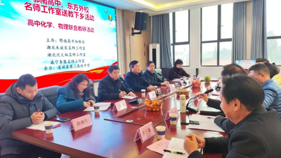 鄂南高中副县级调研员陈斌,咸宁市知联会副会长、湖北名师朱旋农,楚天名师沈文炳、咸宁化学学科工作室主持人李慧及三个工作室的部分成员参加了交流活动。交流活动得到了通城县教育局、教研室、通城三中的领导和老师的大力支持。 交流会议由通城三中校长汪四甫主持,通城三中党委书记杜成兵致欢迎辞。通城县教育局副局长毛瑜要求参加活动的青年教师认真学习,利用一切机会提升教书育人能力,努力成为一位具有独特个性和能力的教师。陈斌要求知联会和名师工作室的老师虚心交流、认真学习,在相互学习过程中,提升教学能力和教学水平,把送教交流活动落到实处。陈斌表示,把这种送教下乡的活动持续开展下去,发挥名师的引领、示范和辐射作用,实现优势教育资源共享。