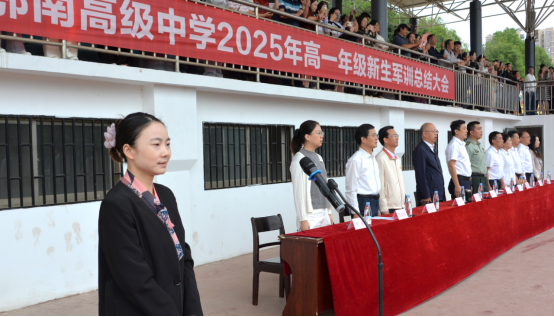 红旗猎猎,军歌嘹亮。9月21日,鄂南高中2025级高一新生军训总结大会在庄严的国歌声中拉开帷幕。高一全体新生以昂扬的姿态、整齐的队列,接受了学校领导、老师、教官及家长代表的检阅,为期一周的军训生活画上了圆满的句号。闭幕式由校党委委员、纪委书记周瑾主持。