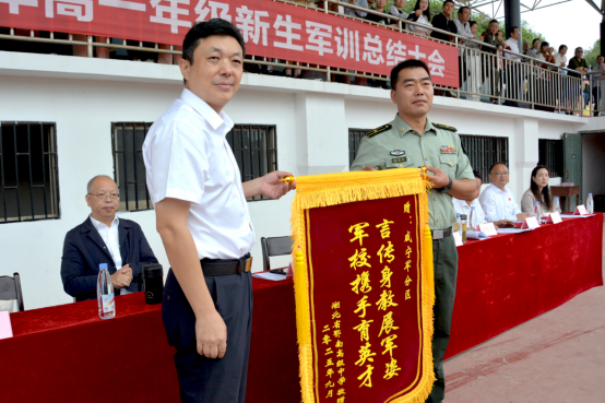 通过军训,磨练了你们的意志,教会了你们在困难面前勇往直前的坚韧。重塑了你们的纪律,懂得了令行禁止。培养了你们的家国情怀和责任担当,给同学们上了一堂生动的爱国主义教育课——你们站立的地方,就是中国;你们的样子,就是中国的未来!你们奋力拼搏、团结进取的精神状态,就是我们鄂南高级中学的精神传承!