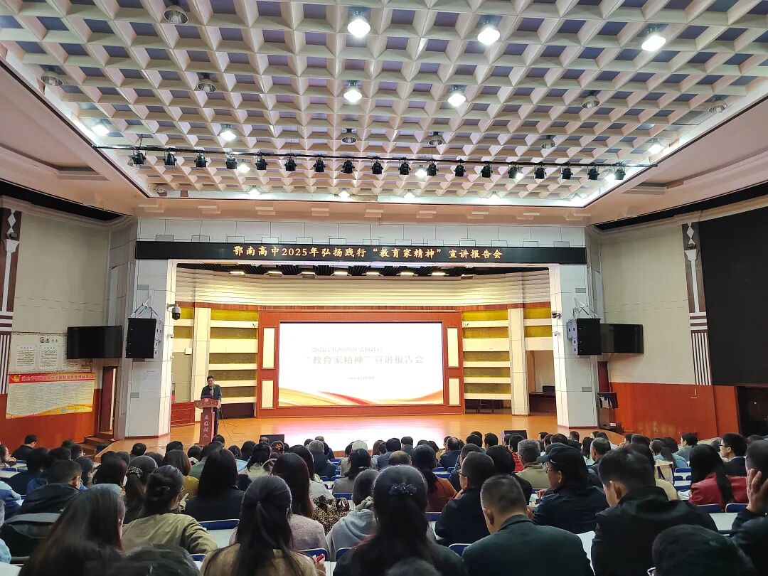 为弘扬践行“教育家精神”,加强师德师风建设,10月20日,鄂南高中隆重举行2025年弘扬践行"教育家精神"宣讲报告会。校党委书记张海泉主持报告会,全校教职工300余人参加学习。