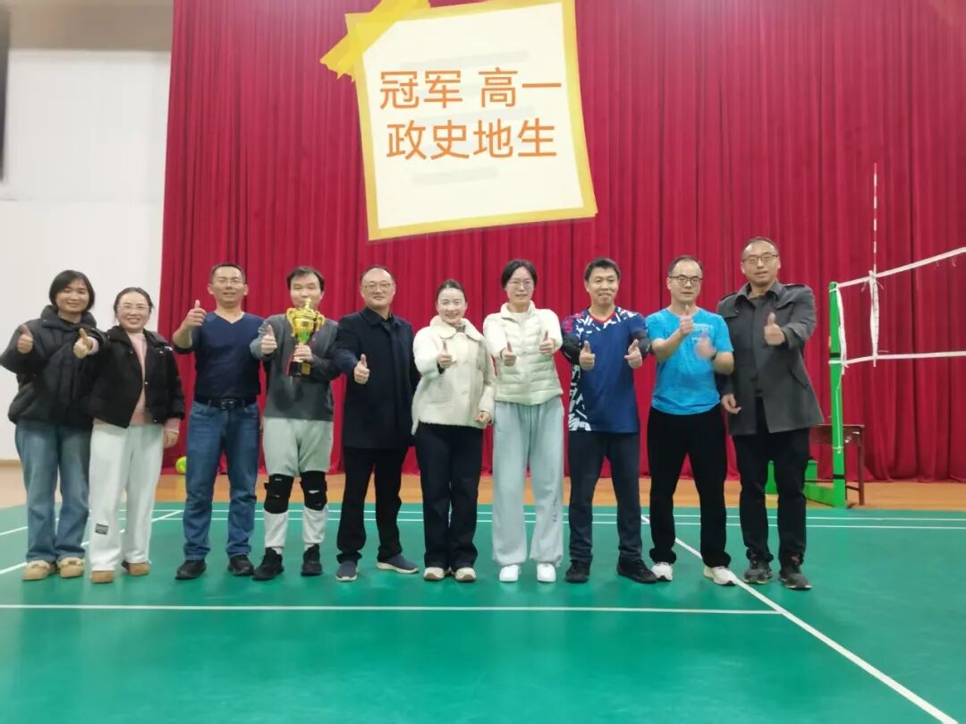 经过循环赛与交叉赛的激烈比拼,高一年级政史地生代表队与高二年级理化队进入最后的决赛。12月10日,冠军争夺赛在体育馆隆重举行,两队实力在伯仲之间,争夺异常激烈。激烈的赛事吸引了许多观众来到赛场观赛加油。首局高一政史地生以21:19险胜,第二局高二理化以21:12追平。第三局两队互有领先,最终高一政史地生凭借更胜一筹的战术配合与稳定发挥,以15:13夺得本届比赛冠军。高二理化代表队获得亚军。