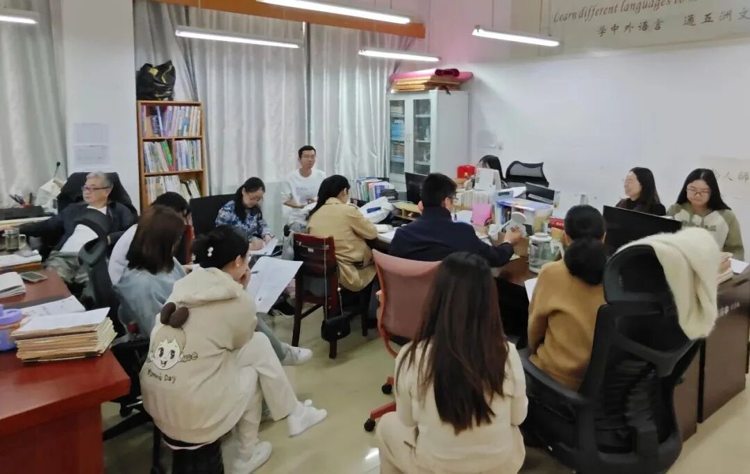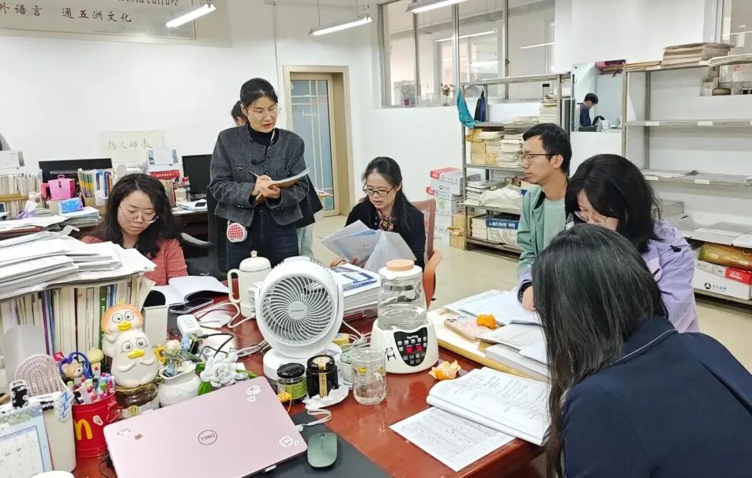 成绩背后是英语组 “抱团取暖” 的坚实支撑:磨课现场座无虚席,老师们挤凳站立、全程沉浸式记录细节。课后放弃休息集中研讨,两节课里从逻辑框架到细节衔接逐环节优化,教学思路碰撞、课件打磨与复盘调整中,大家毫无保留分享经验,以 “拧成一股绳” 的协作精神攻克难关,这份集体力量为夺冠路筑牢了坚实根基。这份荣誉,既是她个人精进的见证,也是英语组集体智慧的结晶,更彰显了学校教研育人的深厚底蕴。